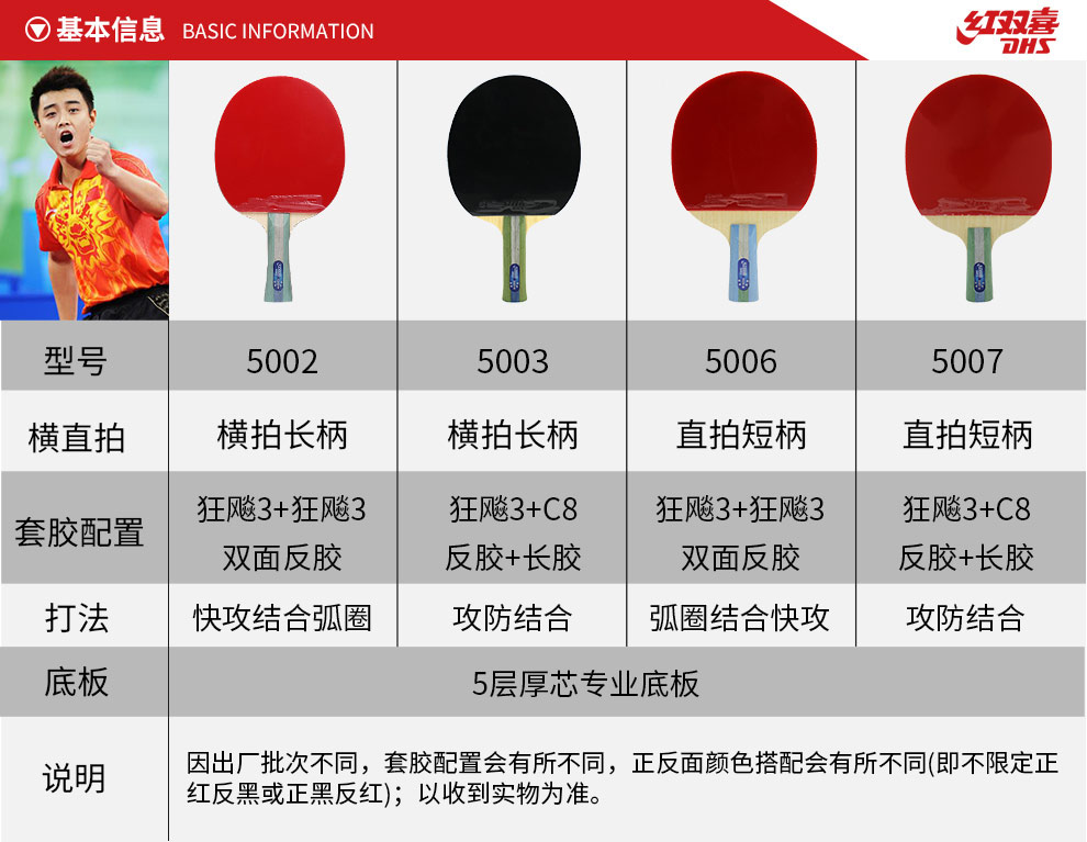 赤い双喜のDHCの5星の6星のラッケの规格品の狂暴な王の単にppqをしたのです。グリップをしたままにしました。5六星の兵の卓球のラケトは5000横で柄の両面の长い反ゴム専门のコーチングをしました。