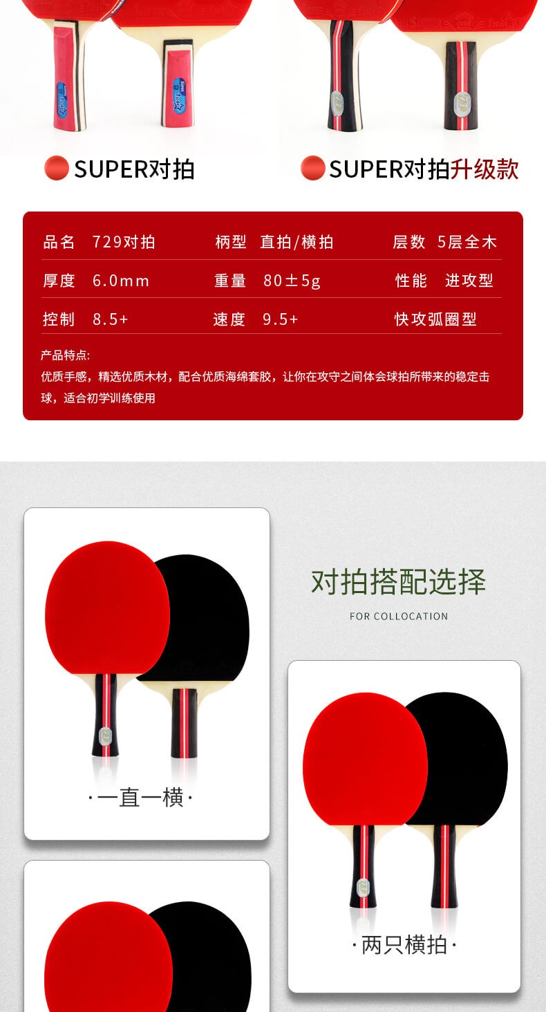 友情729ラッケト卓球の完成品は初心者を撮影します。2枚のラッケトをセトする。2枚のセストはダブルショーでアタッチメントです。