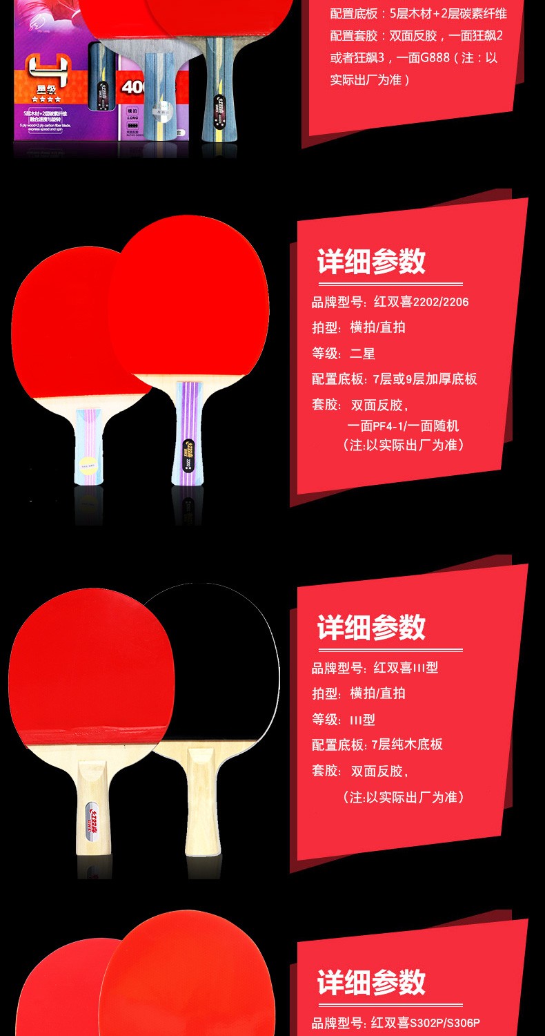 红双喜拉ケト正品初心者の子供が横つまみます。直接撮ります。ppqp学生娯楽级専门级のピンポを撮ってT 1006短い柄を直接につまみます。二枚は10球と2セクトをプロシュートします。